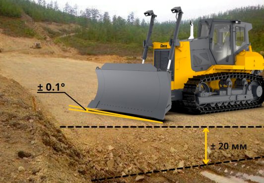 - Позволяет увеличить точность и стабильность выполнения работ, за счет близкого расположения базовой станции и GNSS - ровера на бульдозере