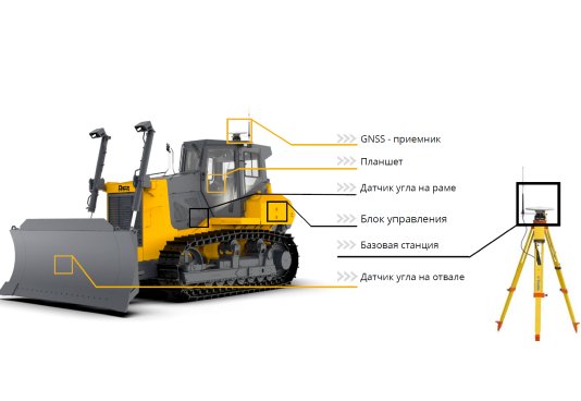 - Позволяет увеличить точность и стабильность выполнения работ, за счет близкого расположения базовой станции и GNSS - ровера на бульдозере