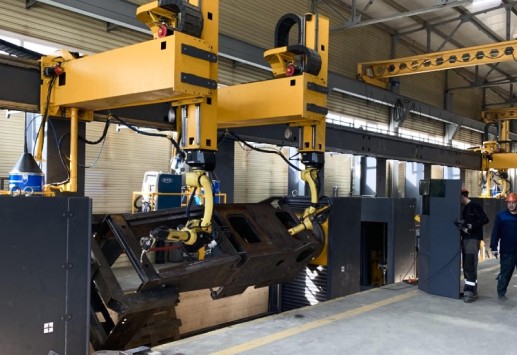 Портальный роботизированный сварочный комплекс предназначен для высококачественной сварки рам бульдозера и отвалов. Внедрение нового портального сварочного цеха обеспечит рост производительности и позволит существенно повысит качество свариваемых соединений. Роботизированный комплекс позволит свести к минимуму влияние человеческого фактора на процесс сварочных работ.